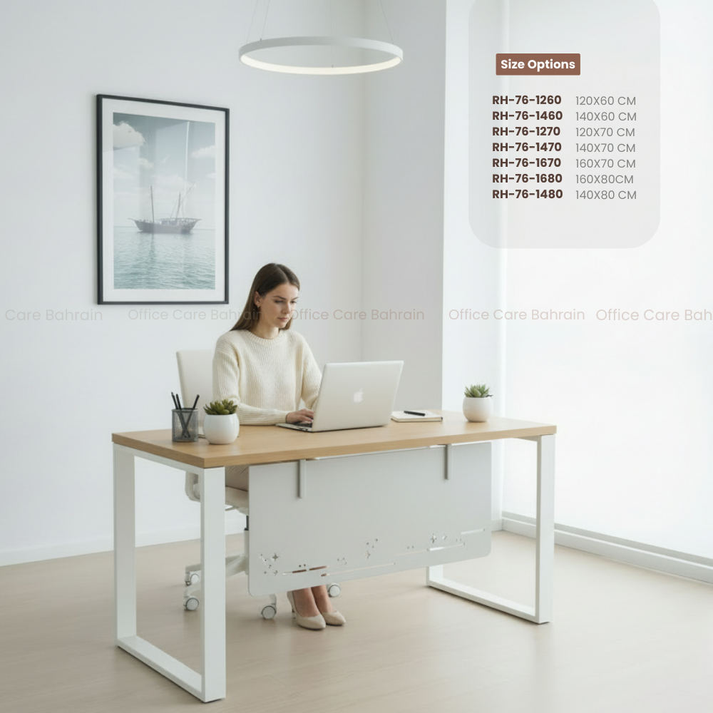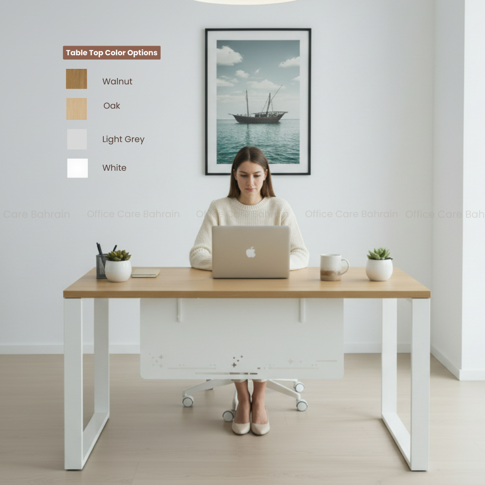 This modern office desk is designed to bring simplicity, function, and style to any workspace. Built with a strong, powder-coated steel frame, it offers a stable and durable foundation for everyday use. The customizable table top—available in white, oak, walnut or light grey—lets you match your office style effortlessly. Perfect for workstations, home offices, or corporate setups, this desk adds a clean, modern touch while giving you the space you need to stay productive.
